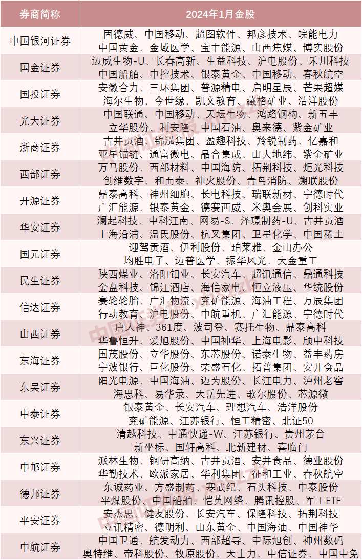 券商2024年1月金股组合